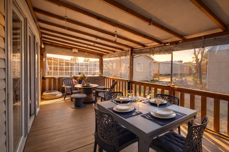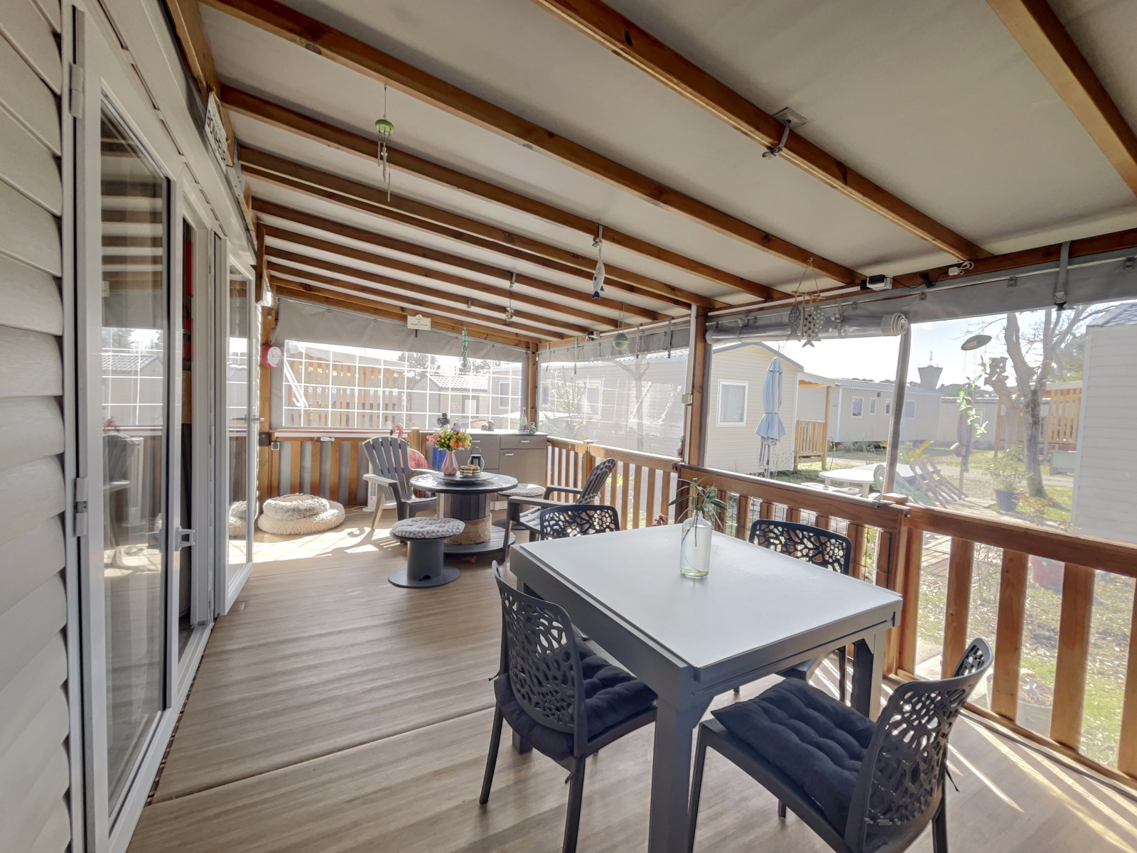 Ce mobilhome vous offre suffisamment d'espace pour passer de merveilleuses vacances en intérieur comme en extérieur grâce à sa grande terrasse couverte.