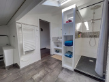A l'étage, il est composé de 2 chambres, une grande salle de bain avec baignoire et douche à l'italienne, wc, un palier avec un coin bureau.